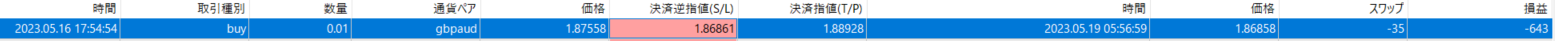 今日のトレードは「ポンド豪ドル」2023年5月16日のトレード記録になります。