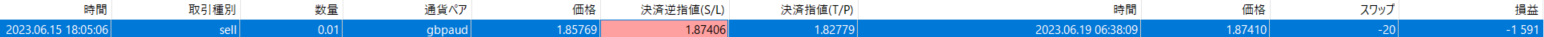 今日のトレードは「ポンド豪ドル」2023年6月15日のトレード記録になります。