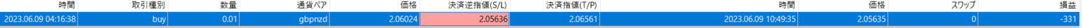 「ポンドニュージードル」2023年6月9日 -331円(-39pips)